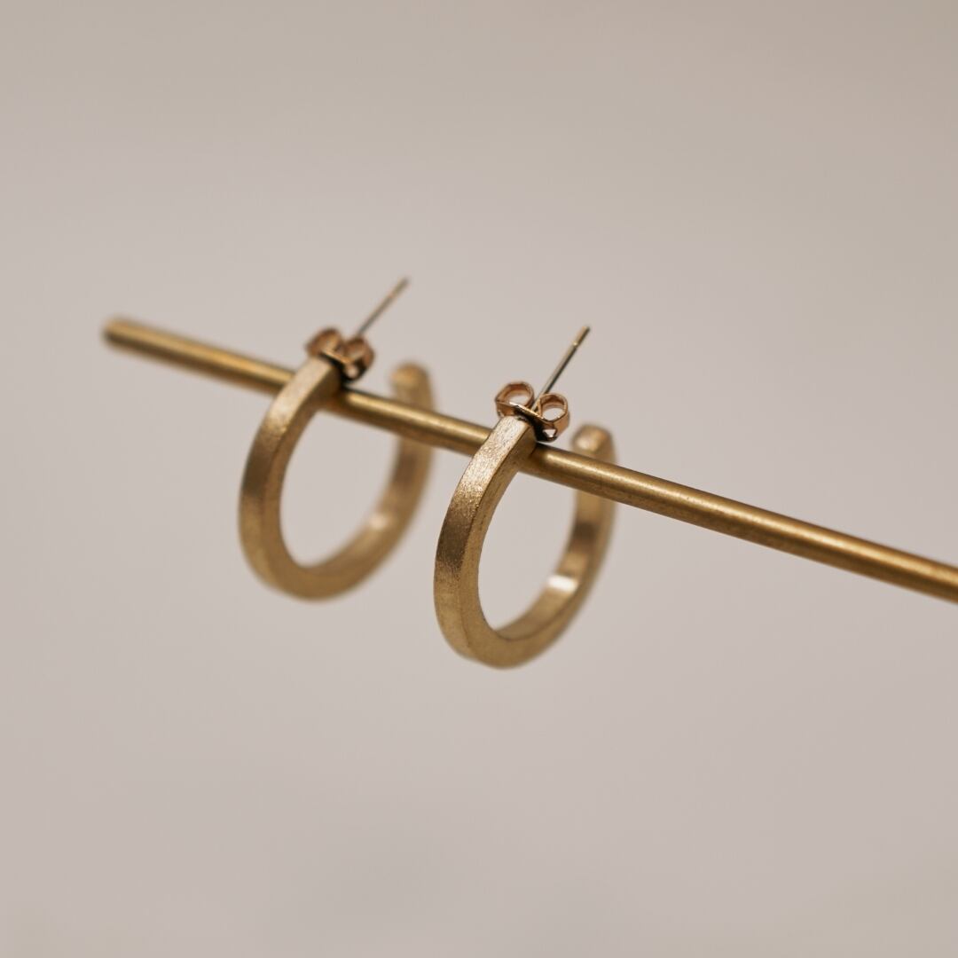 3mm角の真鍮を円形に加工した、スタッドタイプのフープピアス。