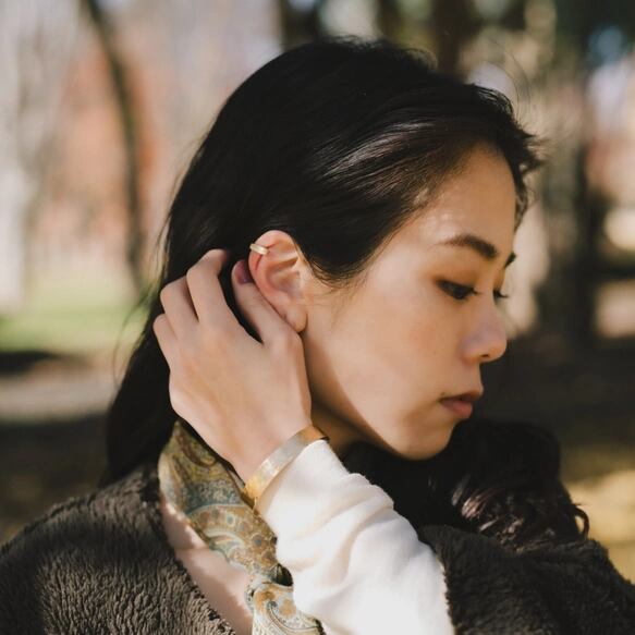 耳たぶのあたりから上にもっていくようにして、簡単に着用できます。
