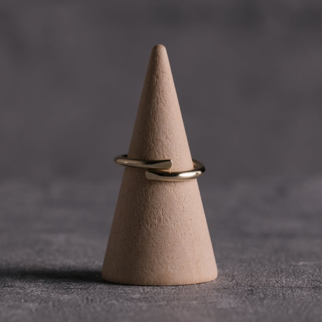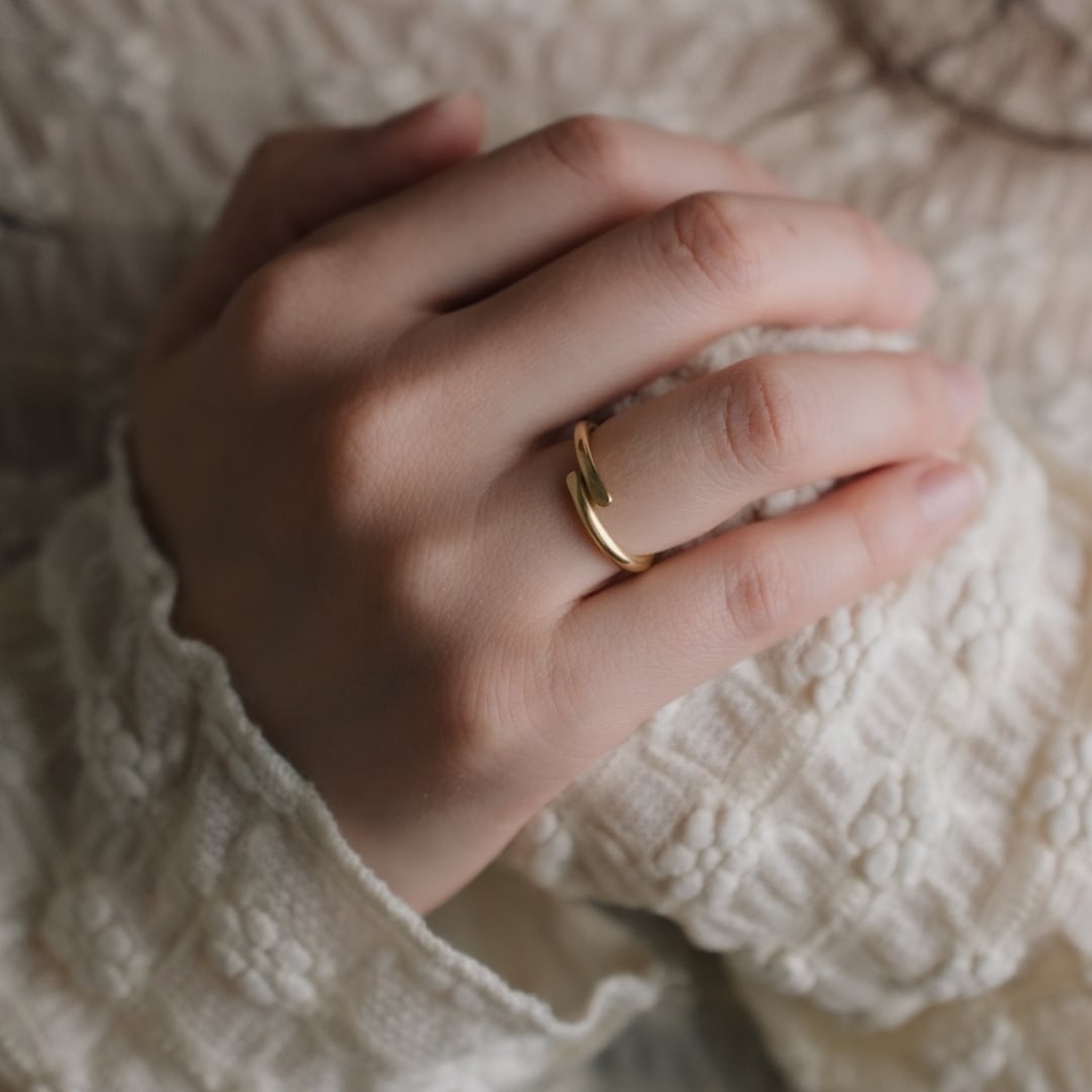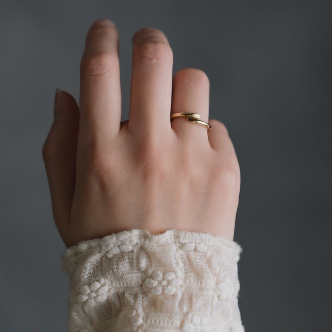 ぎゅっと抱きしめるようにリングエンドが重なるリング